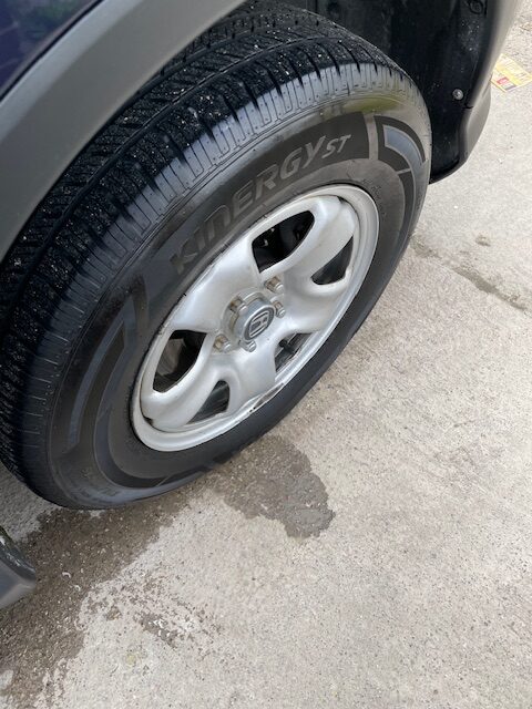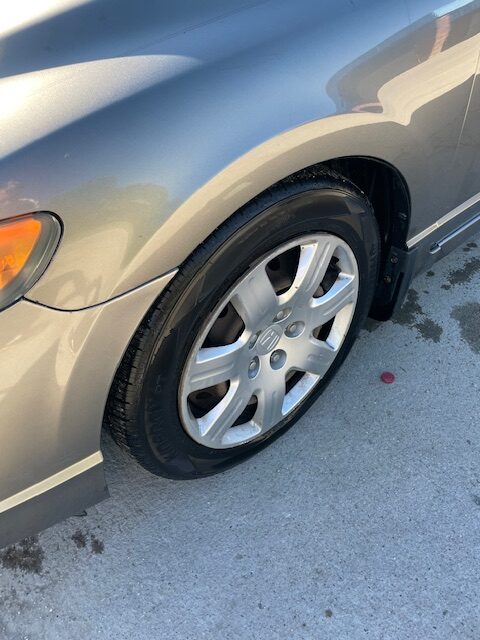 We apply exterior trim shine to breathe life back into faded trim. I inspect the wheels, remove nasty grease, and finish off by applying my famous tire shine.
